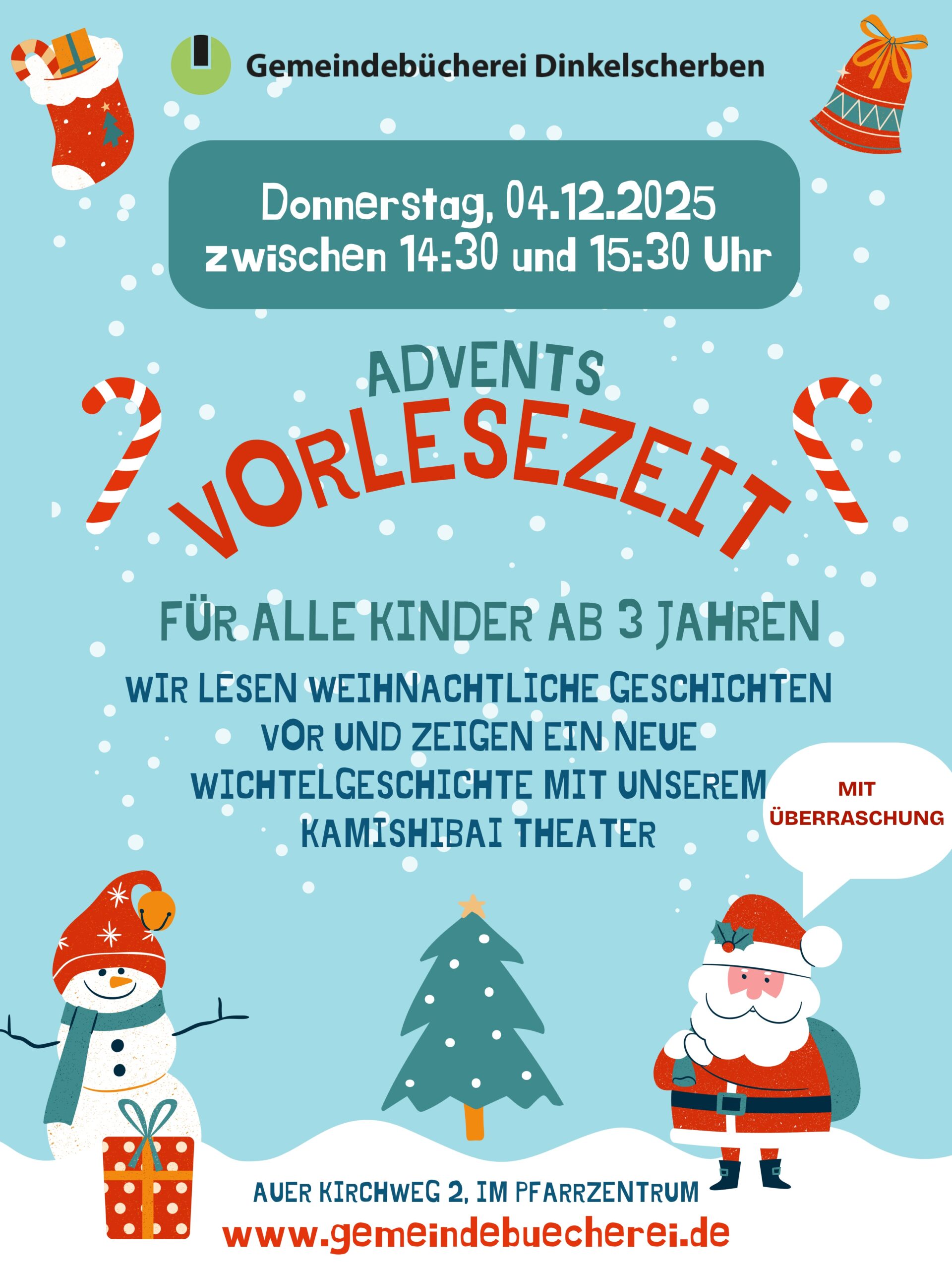 Am 4. Dezember ab 14.30 Uhr wird es in der Gemeindebücherei schon ein wenig weihnachtlich. Wir lesen winterliche Geschichten vor und zeigen eine neue Wichtelgeschichte mit unserem Kamishibai Theater. Und pssssst – sagt es bitte nicht weiter – ein gewisser Nikolaus hat eine kleine Überraschung für euch dagelassen. Seid ihr neugierig geworden? Dann kommt vorbei und seid dabei! Wir freuen uns auf euch.